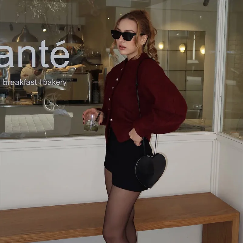 Model Number: 2024 Solid Color Elegant One Button Woolen Jacket