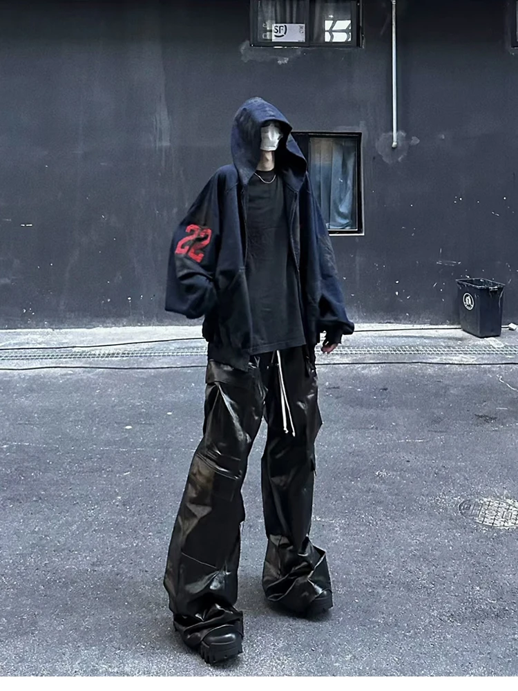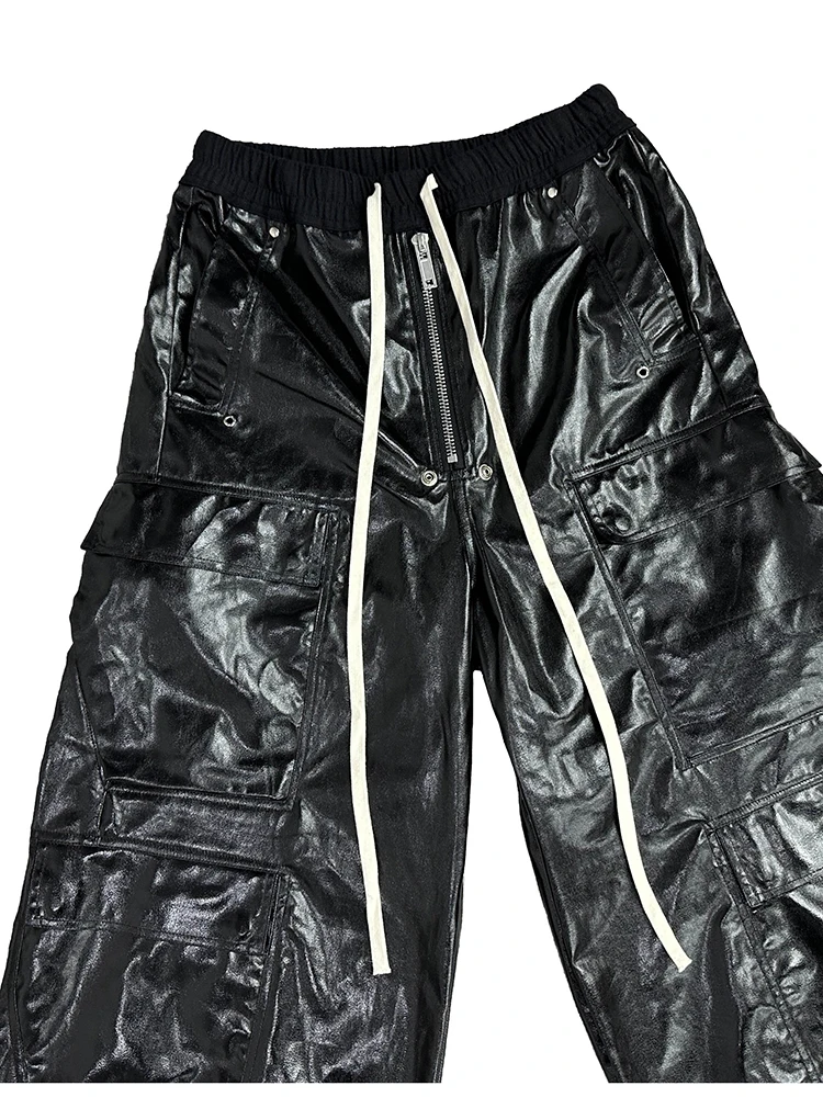 Autumn Cool Black Shiny Reflective Leather Wide Leg Pants for Men