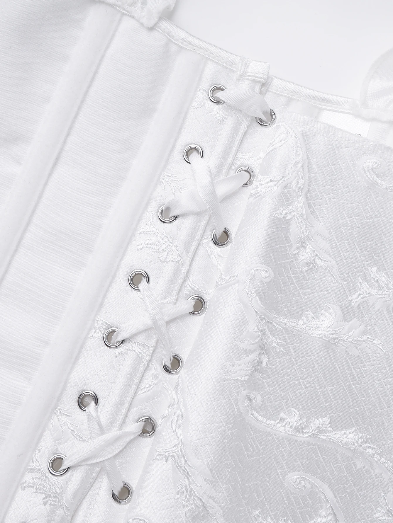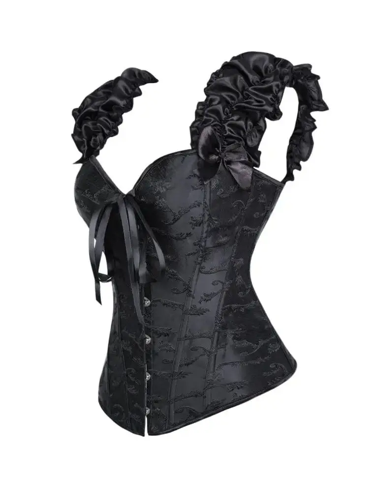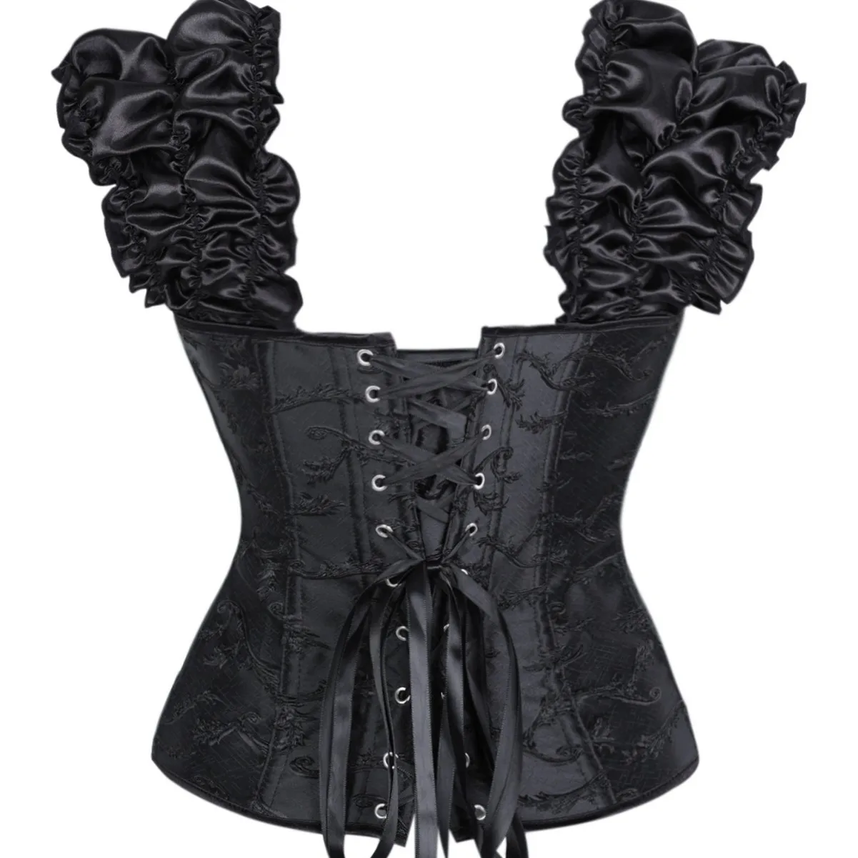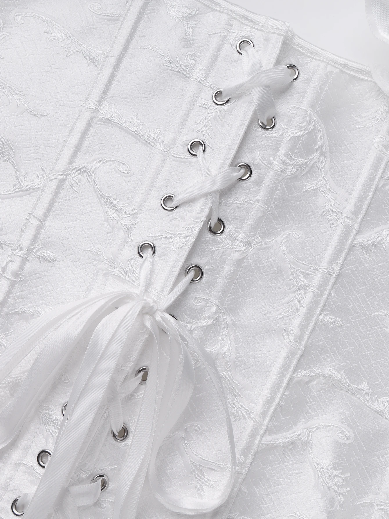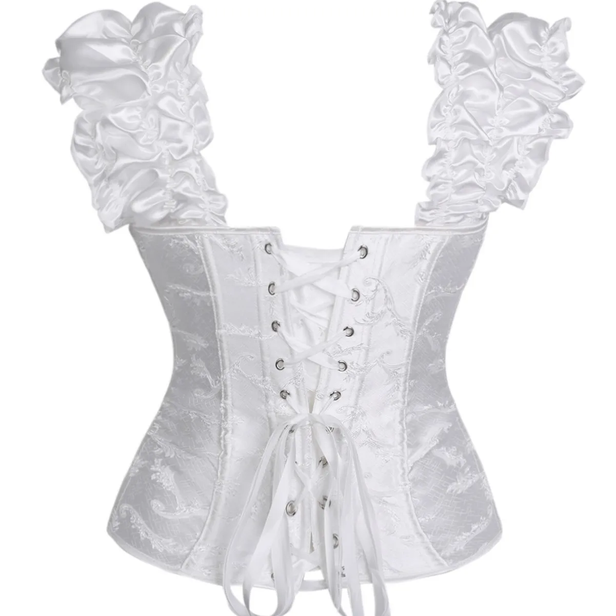 The corset has an extension fabric and ribbons on the back for adjustment and magnification