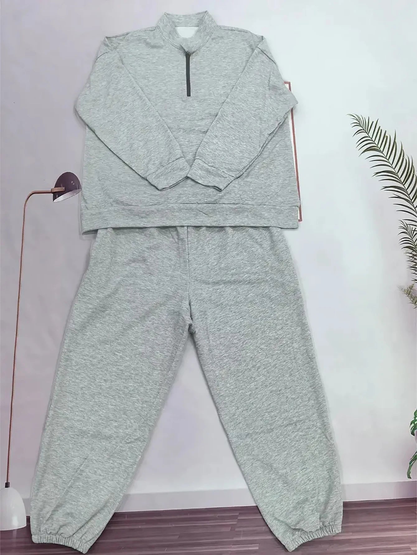 Women Pockets Down Collar Zipper Long Sleeve Pullover Sweatshirt
