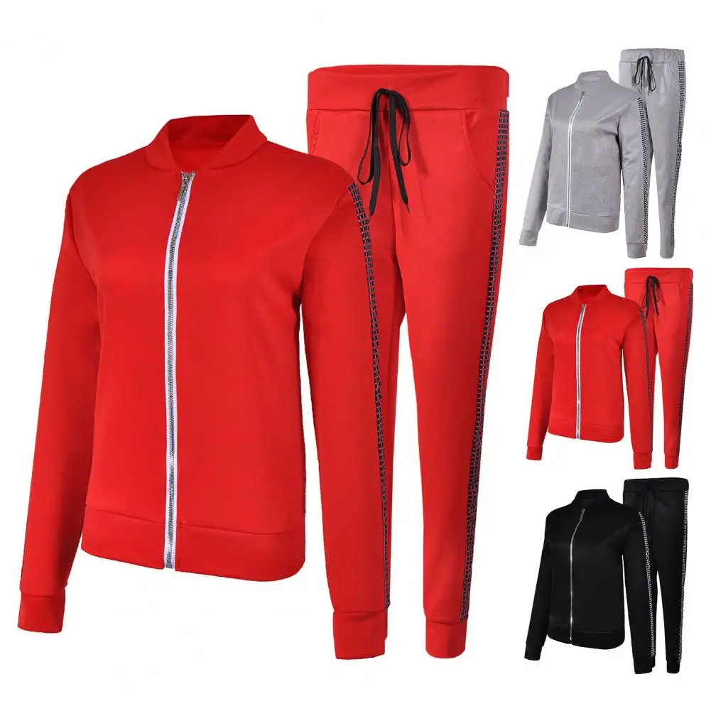 Elevate your casual wardrobe with this stylish Spring and Autumn Women's Zipper Casual Vibrant Sports Fashion Suit. Perfect for everyday wear, this suit features a slim silhouette with long sleeves and printed dots on the sleeves and sides of the trousers.